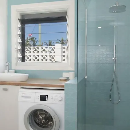 Betty'S At Lennox Head villa comes with a bathroom with a separate toilet, a shower, and a washing machine. There are a hairdryer and bath sheets for guests' comfort.
